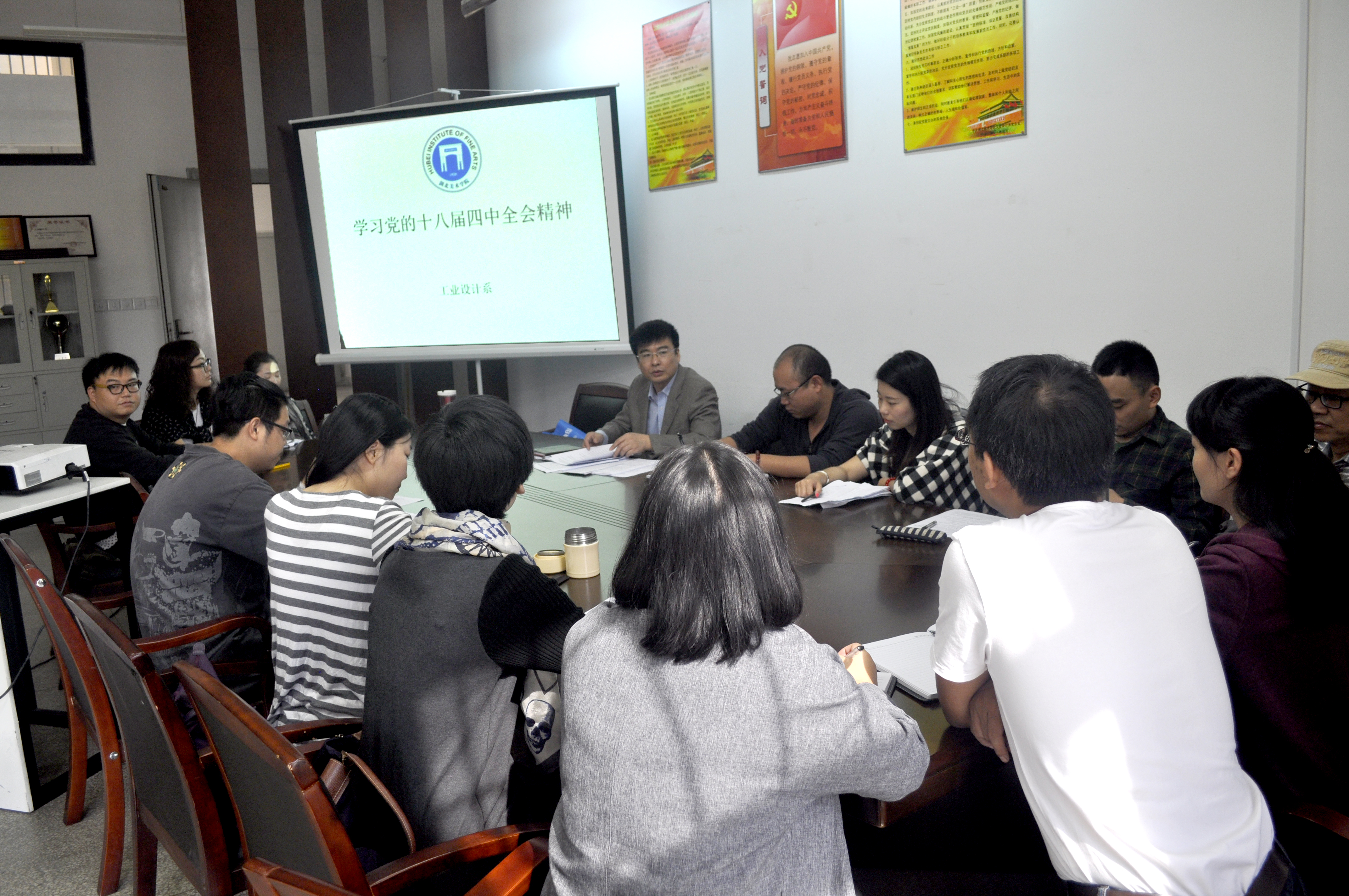 按照公司要求,2014年11月3日中午,工业设计系全体教职工在系教学楼207办公室专题学习贯彻党的十八届四中全会精神,党总支负责人汪早林同志主持学习会。