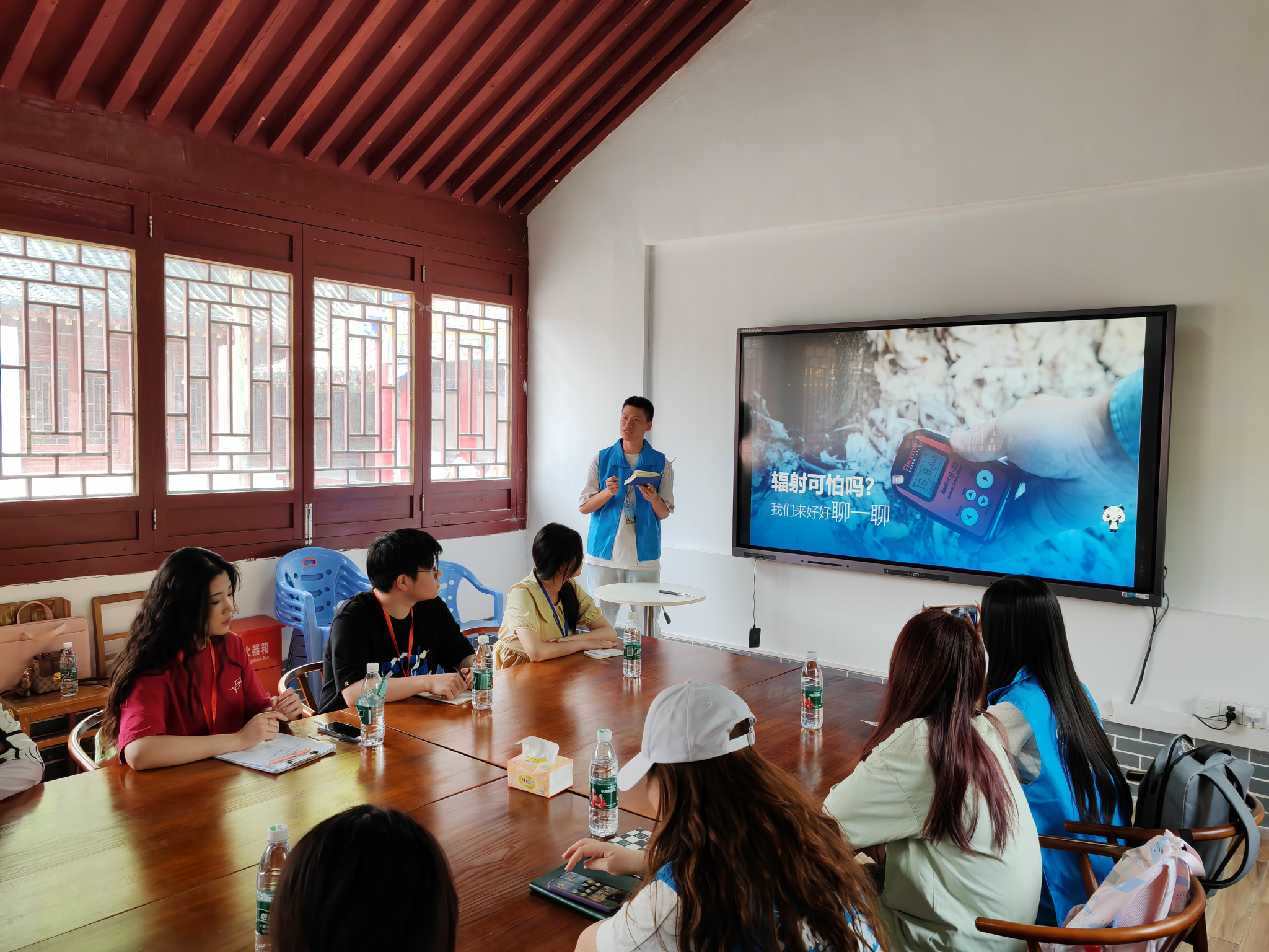 活动现场,宣讲团成员陈杨结合日常生活对“核技术在公共安全领域的应用”“辐射的价值”等多方面知识进行科普讲解,并通过“两弹一星”功勋奖章获得者钱学森、于敏两位科学家的典型事迹,讲述了他们义无反顾投身新中国建设事业、为国奉献一生的榜样故事。队员娓娓道来,在场同学认真聆听。