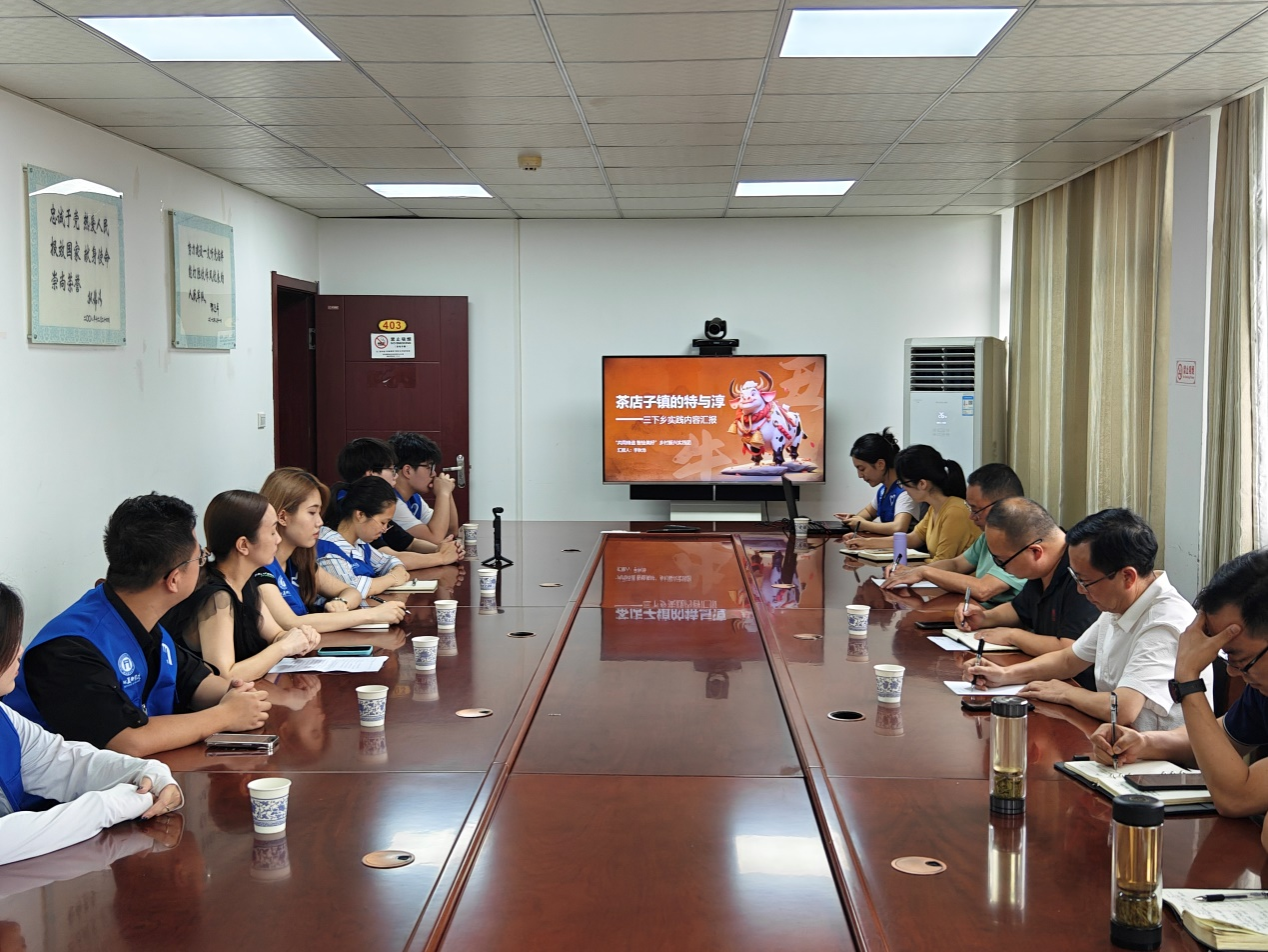 会上,赵卫东代表茶店子镇人民政府向实践团全体师生的到来表示热烈欢迎,并向参会人员介绍了茶店子镇的地理优势、脱贫攻坚成果、乡村振兴发展目标和方向。实践团团长李秋池以“茶店子镇的特与淳”为题,就活动的总体部署思路、具体实践过程、预期成果等方面进行了专题汇报。