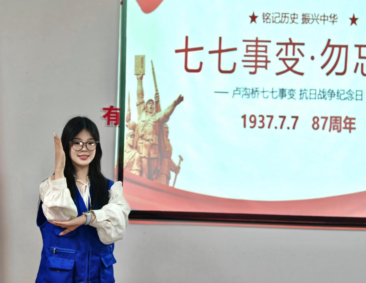 7月7日上午,在“七七事变”爆发87周年之际,实践团员郑旭彤等带领现场儿童在抗日英雄的历史故事中重温卢沟桥事变的历史,在红色竹编画创作中追忆艰苦卓绝的战争岁月,感受抗战精神的伟大力量。