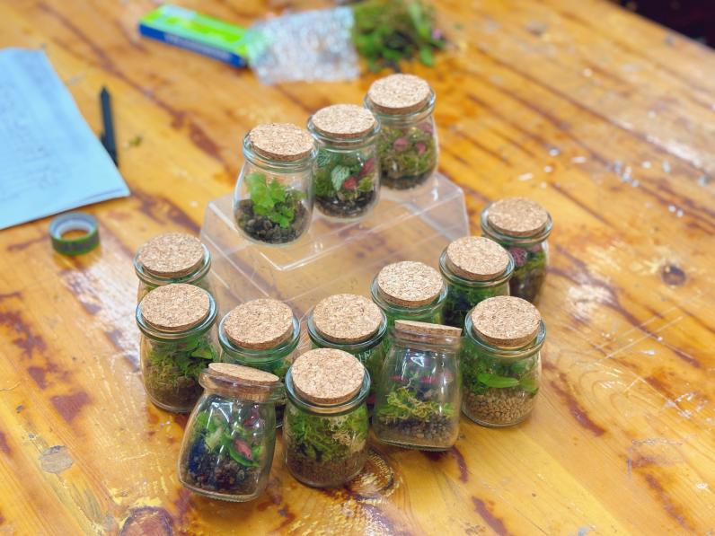 在同学们的精心制作下之下,一个个充满生机与创意的微景观生态瓶诞生了。