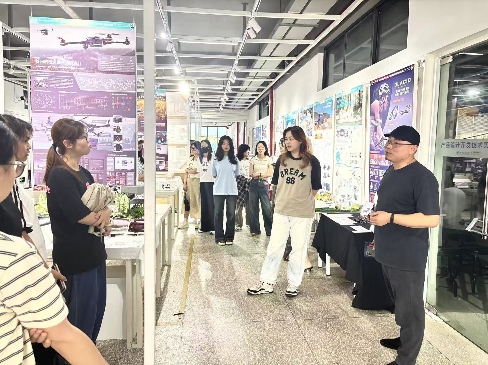 沉浸观摩:感受设计魅力,汲取榜样力量。本次展览集中呈现了本届毕业生的智慧结晶,展品涵盖智能家居、交互设计、交通工具等多个前沿领域。一件件构思精巧、制作精良的设计模型、产品原型与展板,生动诠释了工业设计“艺术与科技融合、创意与实践并重”的学科特质。活动核心在于“看”与“导”,各新生班班主任化身专业导览员,围绕重点作品的设计理念、用户研究、技术实现、材料工艺及市场潜力等维度,进行深入浅出的讲解与分析。新生们沉浸其中,或驻足细品、或低声交流、或认真记录,学长学姐们的创新思维与实践成果,为初入设计殿堂的他们提供了最直观、最生动的学习范本,眼中闪烁着对专业知识的渴求与对未来创作的憧憬。