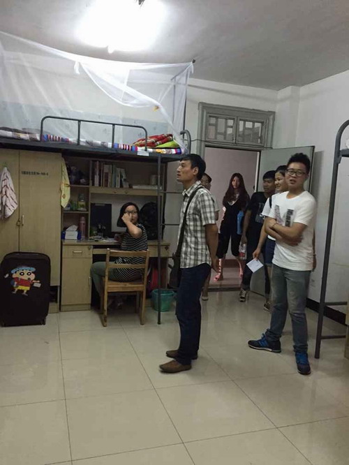 (新闻网讯)2015年9月10日下午四点,迎新工作刚结束,工业设计系辅导员带领员工会干部就深入新生寝室走访,亲切看望2015级新生。