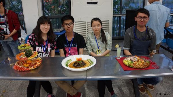 22日小组赛中,我系参赛者积极配合,共同完成了水果拼盘“花花皇宫”、主菜“亚特兰蒂斯”及配菜豆角烧茄子,以85.6分获小组赛第一的成绩成功晋级。24日总决赛中,选手们潜心研究、精心准备,三层华丽的水果拼盘,由泰式咖喱虾、黄金鱿鱼卷、炭烧鱿鱼须和鱼子酱组成了“四海一家”,由菲力牛排和龙利鱼柳组成“海陆双拼”更是创意十足。“切煮炒炸样样全,色香味美个个鲜”,在品尝过程中老师和员工代表赞不绝口,大家的努力得到了评委们的一致认可,这是对选手们最大的鼓励。