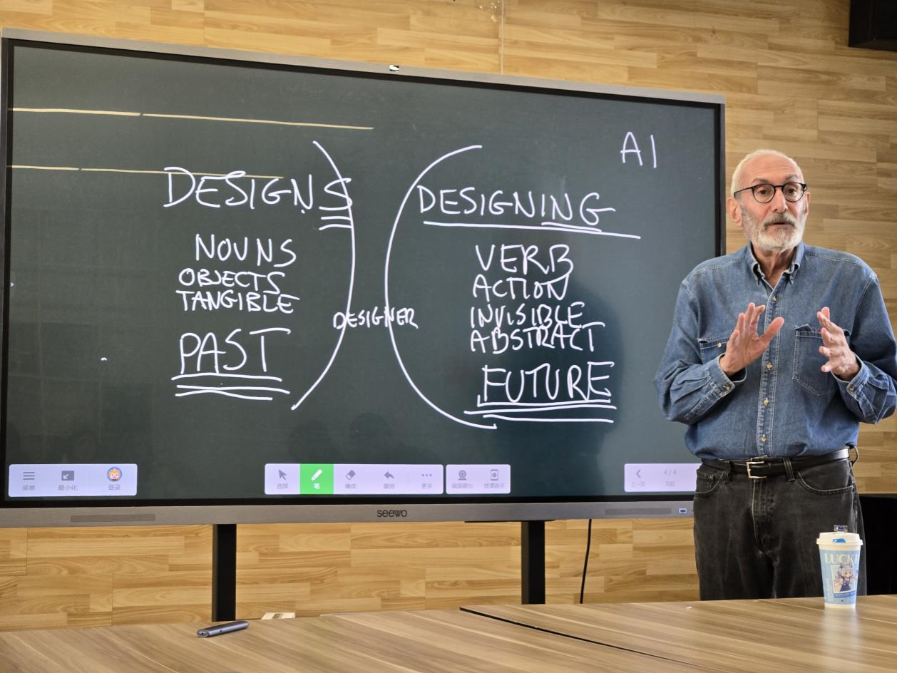 讲座中,大卫·格罗斯曼教授以其丰富的设计经验和深厚的理论功底,从“什么叫做设计”出发,深入探讨了艺术设计的热点话题。他详细区分了三个与设计相关的名词,对设计的历史等专业概念进行了细致的讲解,并结合自身的学习工作经历,分享了对艺术设计的独特感悟。讲座内容深入浅出,既有理论深度,又具实践指导意义,让在场师生受益匪浅。