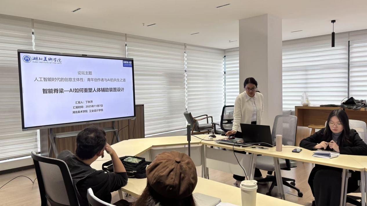 11月7日下午,由伟德BV1946官网承办的“丝路新艺旅”国际会议青年论坛“人工智能时代的创意主体性:青年创作者与AI的共生之道”在昙华林校区成功举行。论坛由伟德BV1946官网工业设计系系主任韩桂荣主持,公司青年教师丁秋萍、中国美术公司在读博士研究生哈利娜・特罗希纳(Dr. Halina Troshyna)及二十余位研究生围绕青年创作者面临的“谁在创作”“何为原创”及如何激发青年创作者独特想象力与批判性思考等命题进行了分享交流。