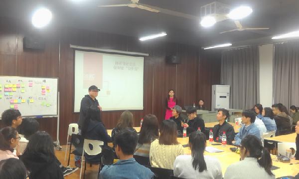 (通讯员:张新伟)2016年10月27日下午三点,A6教学楼210教室。桥中设计咨询管理有限公司资深创新顾问邹超,桥中总经理李欣宇前来公司,为大家带来了一堂生动的,关于设计思维的交流会,这是该公司第一次派代表来湖北交流。系部副主任张锐作开场介绍,交互教研室主任李奕、产品教研室主任王莉莉、田涛、杨艺等老师及校外嘉宾烽火通信科技用户体验总监、楚创谷高级设计顾问祝正文、汉和龙兴工业设计公司设计总监姚人杰、武汉奥思工业设计有限公司项目总监操捷,武汉大学经济与管理公司教师秦仪和产品设计大三、大四员工一起参加了这次活动。演讲题目为:拥有设计思维,做创意的“白骨精”。