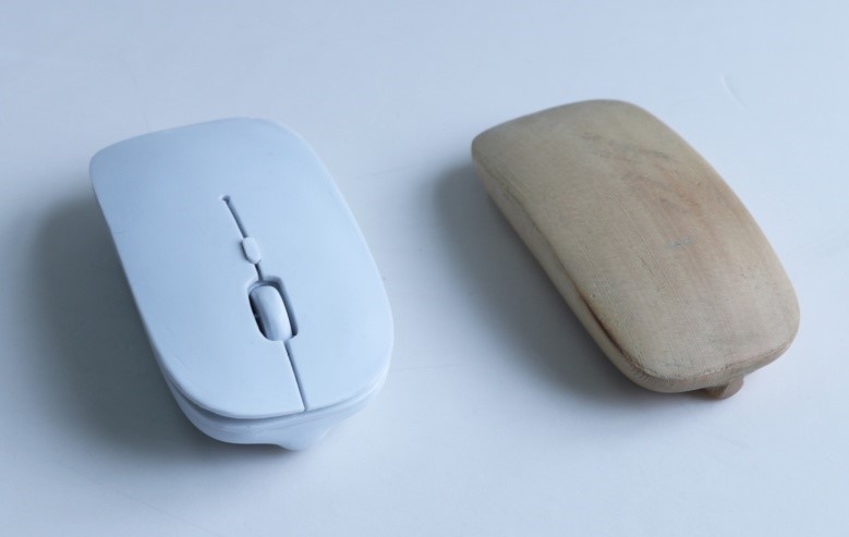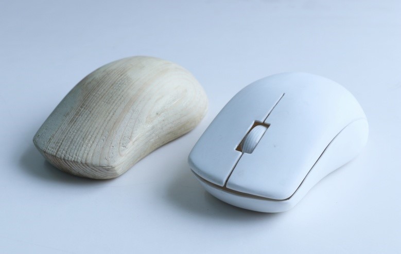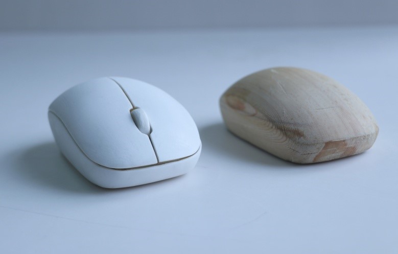 1.通过观察、测量自己选定的鼠标,绘制出该鼠标1:1六视图。2.参照鼠标六视图,用印蓝纸在木块上印制视图,再对木块进行打磨制作鼠标木模模具。3.利用ABS塑料板材,通过加热,在鼠标木模上热压成型,形成不同分件并进行装配,制作塑料鼠标模型。考核要求:模型形态准确,表面处理平整光滑,分模线清楚呈现,分件合理相互匹配产品细节完整。