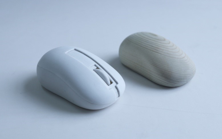 四周课程中,同学们对产品从形态到材质的转换有了一定的认识。认识到图纸绘制、尺寸把控、材质选择、加工方法及工具选择、制作程序手法、时间管控等,都是材料工艺与模型制作的过程,缺一不可,是将产品做好的重点环节。课题一从观察自己的鼠标进行鼠标木模模具制作,认识模具在产品成型中的重要性;从选择ABS塑胶板材过程中,认识到不同塑胶板材加工特性;从对ABS板材进行电烤箱加热,再通过鼠标模具进行热压成型的过程中,了解ABS塑料板材的特性,掌握了热压塑料板材的技巧,体验ABS材料的可塑性,并能灵活使用材料与工具。对不同鼠标零件的热压成型与裁切装配粘接,掌握材料裁切打磨方法和部件连接装配技巧。课题二从自己设计绘制榫卯产品图纸,到研讨设计可行性,修改完善图纸。能够将形态和榫卯结构及功能整合设计,感受到传统榫卯结构的魅力。根据图纸进行实木选材,并进行型材加工,进一步对尺寸比例有清晰的认识把控,对材料特点深入了解。对实木型材进行手工开榫和打卯眼的过程中,学会了制作的方法技巧。对榫卯进行匹配打磨的过程中,学会了留有余料,尽可能的让榫卯结构稳固。在对榫卯模型进行表面处理时,学会了选择核桃油或木蜡油,进行木料的表面涂饰和保护。