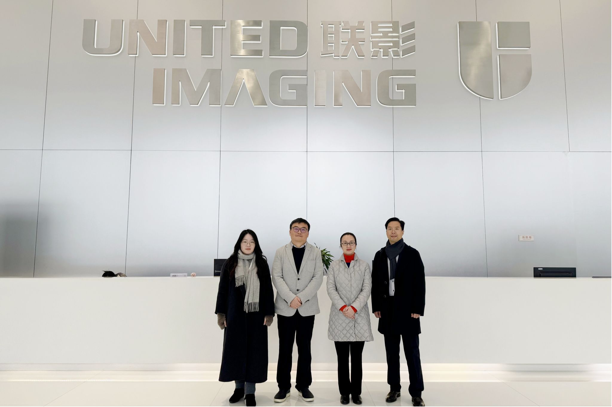 在相关负责人陪同下共同参观了联影现代化医疗产品展厅。展厅集中展示了公司在医学影像、机器人等尖端医疗领域的产品与解决方案。