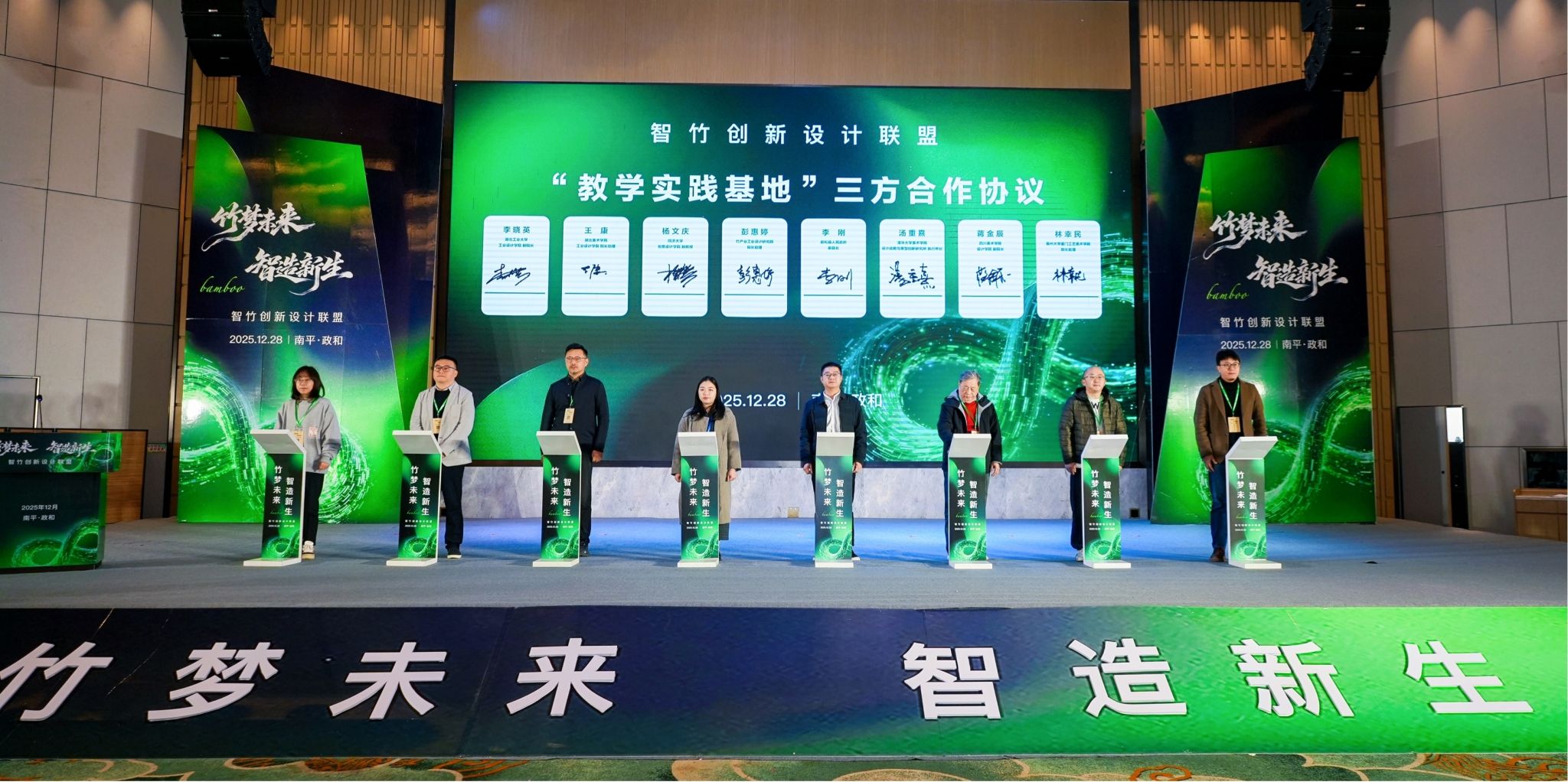 12月27至29日,“竹梦未来,智造新生—‘智竹’创新设计联盟活动”在福建省政和县举办。本次活动由福建省竹产业工业设计研究院主办,汇聚政府、行业协会、设计师、企业及高校等,共同见证“智竹”创新工业设计联盟的成立。福建省政和县通过整合多方资源牵头共建联盟,聚焦设计赋能,推动竹产业从“制造”向“智造”转型升级,为培育新质生产力、实现高质量发展注入新动能。伟德BV1946官网经理助理王康、副教授张俊杰应邀参加本次活动。
