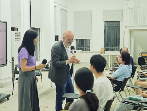 Alfred Otto Sommer教授以“你认为什么是信息”与同学们展开讨论。他提出,信息不仅是数据和知识的传递,更是理解、解释和决策的基础。同学们积极发言交流,从多个角度阐述了对信息的理解,现场热烈的讨论氛围。