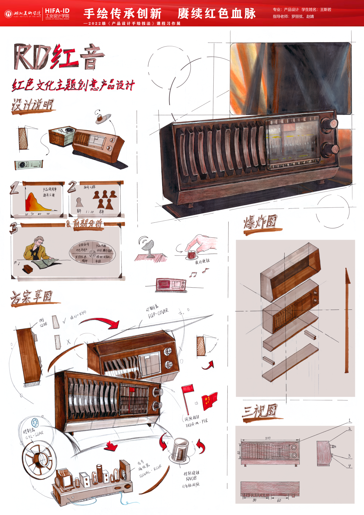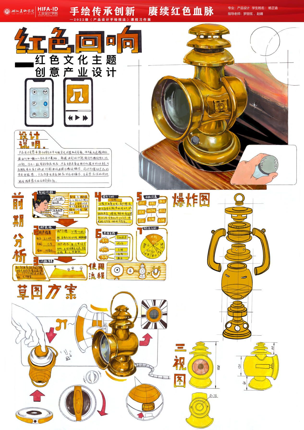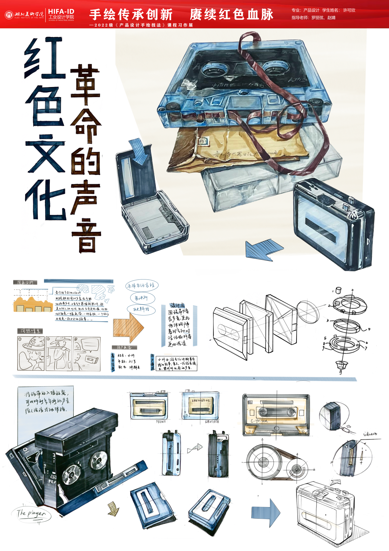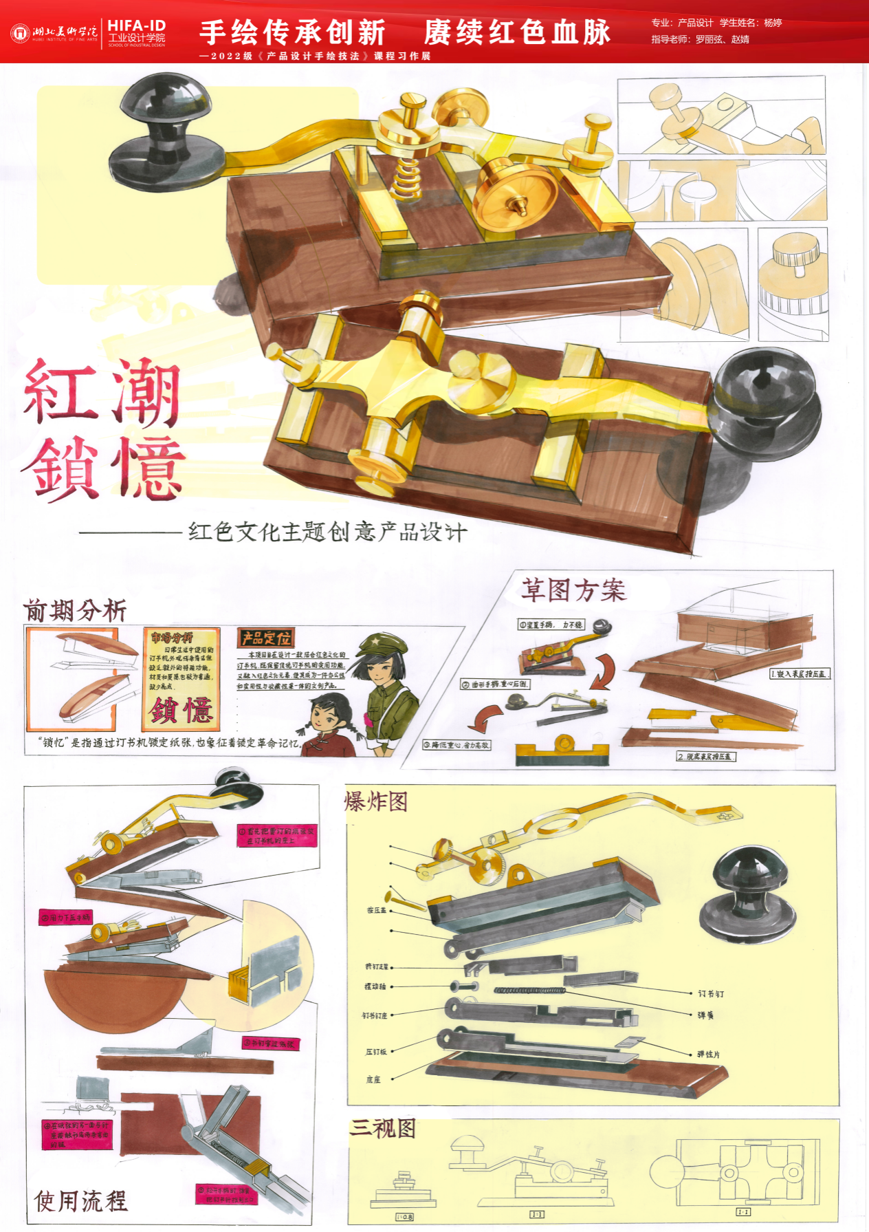 《产品设计手绘技法》课程习作展在手绘技法的传承,不仅仅是技巧的传授,更是对设计师艺术修养和审美意识的培养。强调手绘在产品设计中的重要性,是因为手绘能够直观地反映设计师的内心世界和创作理念。在传承手绘技法的同时,我们更要注重创新,将手绘技法与现代设计理念和科技手段相结合,赓续红色血脉,传承优秀文化,创造出更多具有时代特色和民族特色的设计作品。